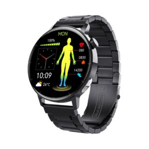 3、Please put the watch on the left wrist during the test, then use the right index finger to moderately touch the electrode piece of the watch, and use the right index finger to touch the electrode piece of the watch.